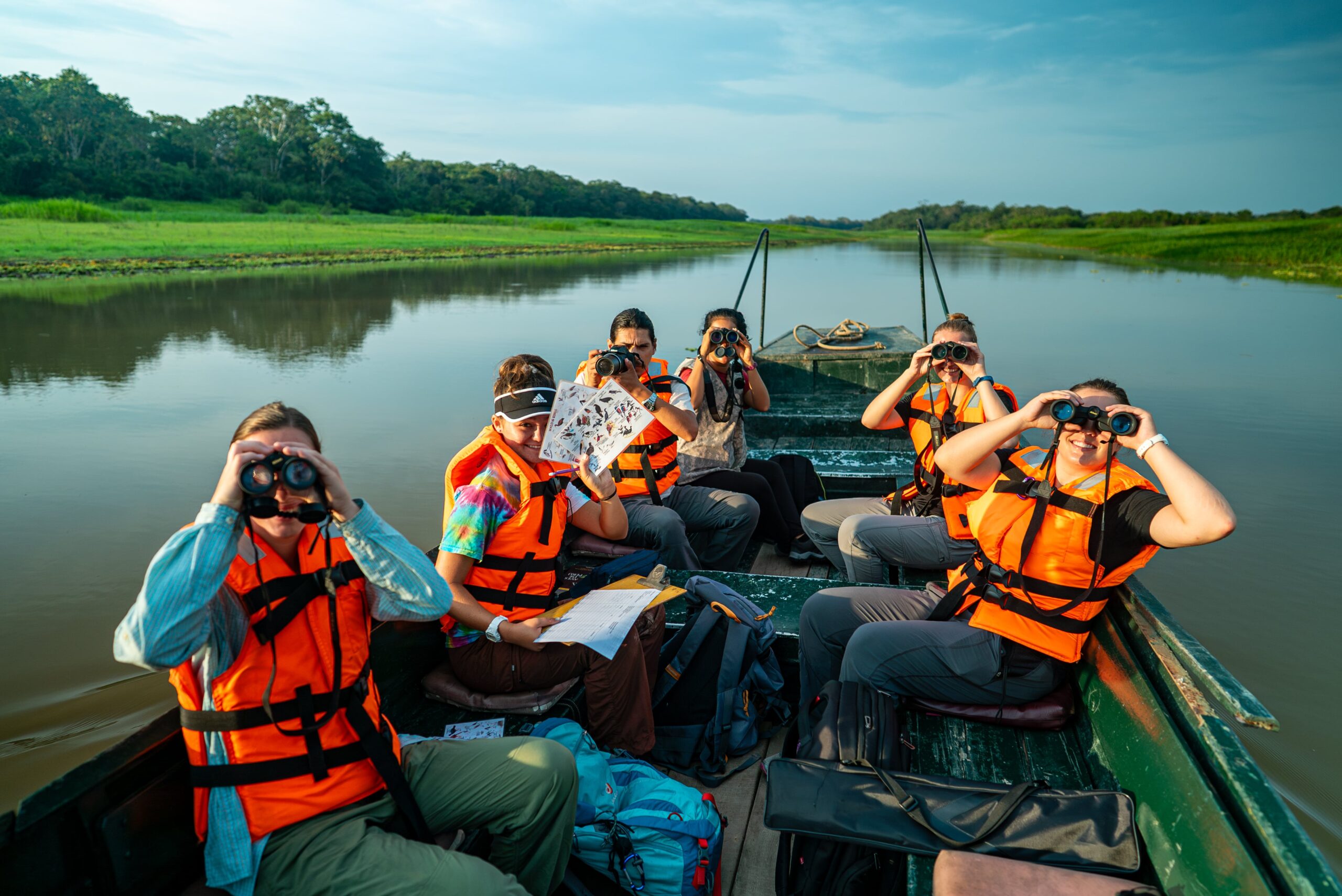 Students climb from cloud forests to lowland jungles, surveying biodiversity, mapping plant–animal interactions, and tracing how altitude shapes life. From ridgelines they see intact canopy stretching in one direction and fields newly cleared for timber and oil in the other. Each trek carries the tension that the world’s richest forests are also among its most endangered. Each dataset transforms from numbers to evidence in a struggle that links Amazon futures to global survival. The days are also filled with joy: the flash of macaws in the trees, river otters floating downstream, and the discovery of rare orchids, sometimes right beside you.