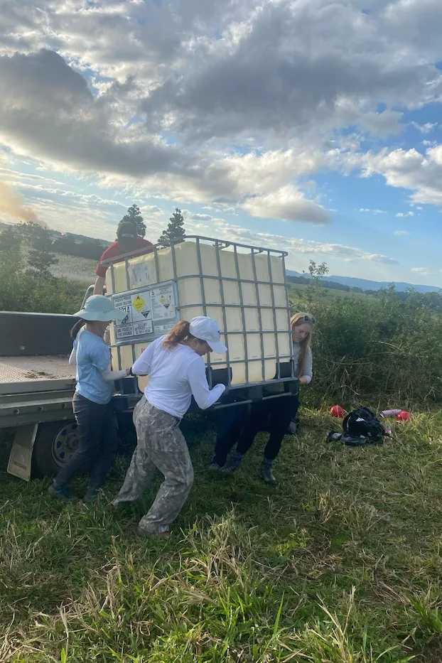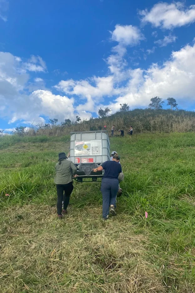 In the meantime, a proper irrigation system was being developed with input from QPWS to utilize two 1,000-liter water pods that were secured by the landowners.