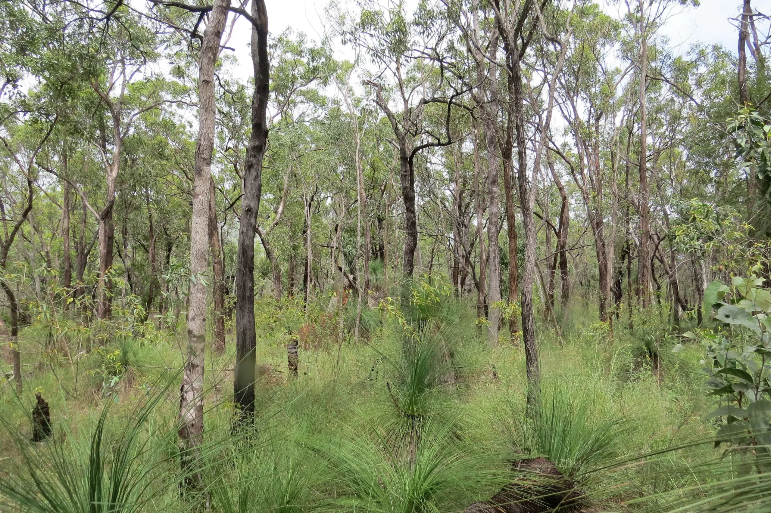 Figure 2: Savanna woodland on the Kanjini property. This field site has grass trees (Xanthorrhoea johnsonii) in the understorey, which may record the dates of fires that occurred over the last two centuries or more. Fire scars in the eucalypt trees may also record these past fire events.