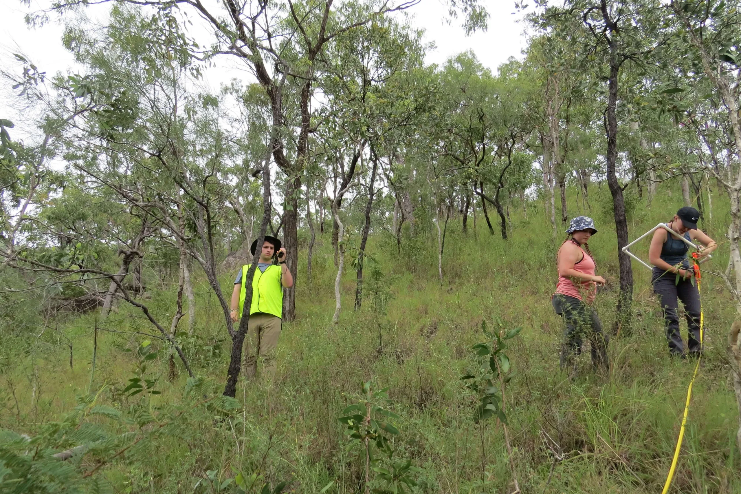 Figure 3: SFS students conducting vegetation surveys in a field site with grass trees in the understorey.