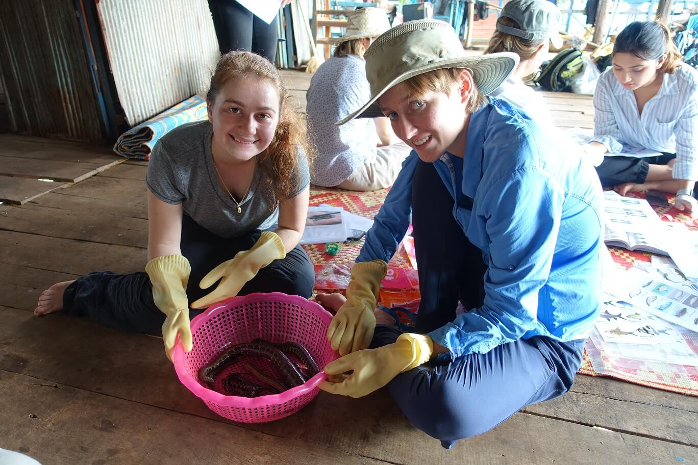 Dr. Megan English and Dr. Ming Li Yong are working with their students in Kampong Khleang, a stilted village on the Tonle Sap Lake. One research group is focusing on biodiversity in the lake, focusing on fish, snakes, and macroinvertebrates. The other research group is focusing on climate change vulnerability, adaptation, and resilience as well as waste management practices in the village. These projects require that students employ their quantitative and qualitative field research skills, in addition to skills like communication, patience, focus, and flexibility. The data the students are collecting will support the Ministry of the Environment as well as local and international non-governmental organizations doing critical conservation and climate change work.