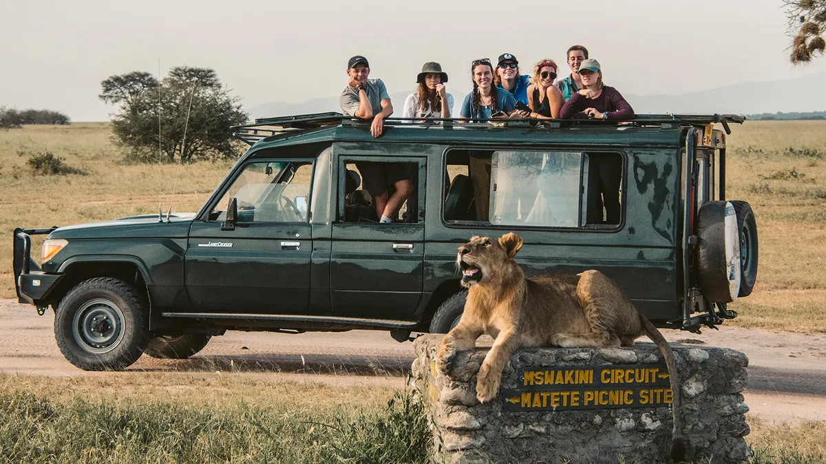 You will visit different ecosystems and communities including Serengeti National Park, Ngorongoro Conservation Area, Manyara National Park, Maasai and other Indigenous communities, rural villages, freshwater wetlands, acacia forests, wildlife migratory corridors, and ranches and farms.