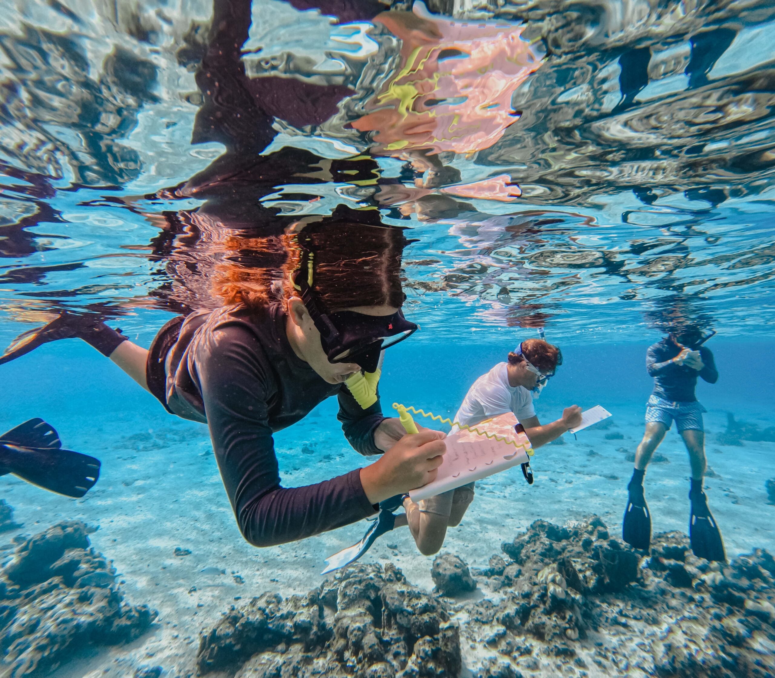 You will gain practical skills in the field such as: marine species identification and population monitoring, habitat and biodiversity assessment, underwater transects and quadrats, snorkel and scuba skills, coral health survey, quantitative and qualitative data collection and analysis, and PADI Open Water Diver certification (offered at an additional cost, upon request).
