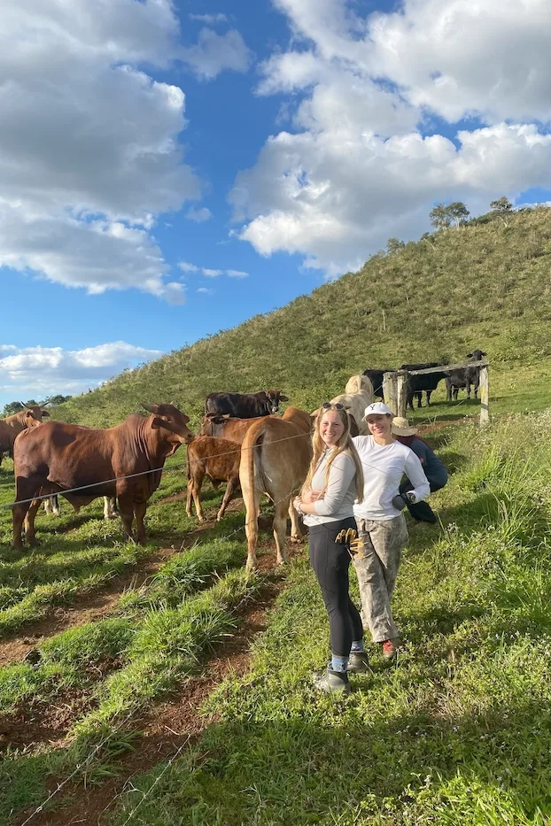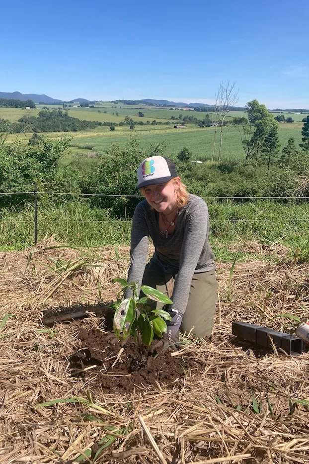 In early April 2023, SFS students and faculty picked up banana plants from ‘Petals in the Park,’ a syntropic permaculture farm on the Atherton Tablelands. Digging out banana saplings was an interesting task for the students—large banana trees have many saplings around them which needed to be dug up and tops cut off. Students learned interesting tips for planting, including banana saplings are best planted upside down! When placed upside down, they grow like a hook before appearing above the ground. This method improves root stability, which is especially important when planting at a windy site (and the cinder cone is indeed windy!).