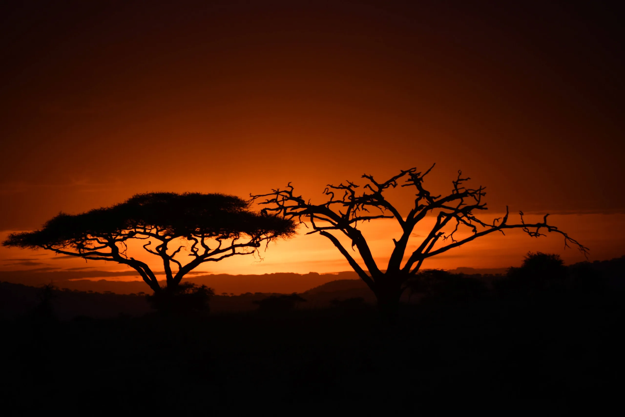 East African sunsets can be a breathtaking event to watch. Over the years, students have shared their sunsets with us – orange, pink, yellow melting and mixing behind the shadowy outline of acacia trees. Ashlyn captured the hearts of our voters with this sunset photo that she took in the Serengeti. If you look closer, you’ll notice one live tree with leaves and one without leaves, maybe dead. The framing of these trees with the rich orange background is one of the best African sunset photos we’ve seen.