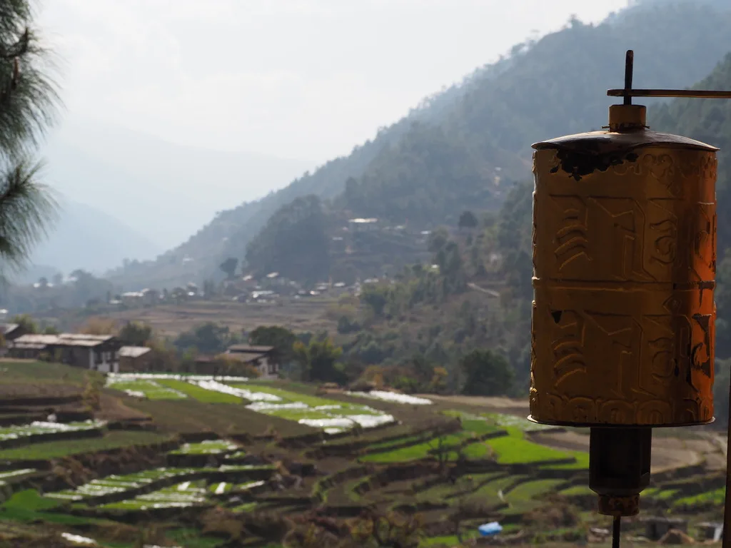 Punakha Valley and a prayer wheel