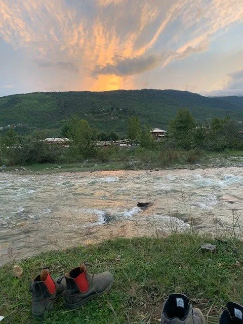 With this slowness and relinquishing of control, I’ve also learned to spend my free moments wisely; to journal and reflect, to go for walks, or to just sit, look at the river and mountains and do nothing. One of my favorite places to sit and read is along the bank of the Paro Chhu (river). I’ve watched many sunsets there as the sky has changed color and I become unable to see the words on the page in front of me. The sound of the moving water drowns out everything else and it is easy to believe you are alone in the world at that moment. I have felt this sense of calm and slowness very often in Bhutan, often as I stare transfixed at one beautiful landscape or another and am filled with gratitude to be here. There have been moments where I have been overwhelmed by the peace I feel. The first is at the top of Chelela Pass where the world is very quiet, and the land is open all around you. I was so calm there that I actually fell asleep at 13,000ft, bundled up, laying on the ground. Another very striking moment was in Punakha and the top of Khamsum Yueley Chorten. The sun was warming my face, and I stood by myself and just stared at the river and rice fields around me. I didn’t want to move. I must’ve stood there for 20 minutes.