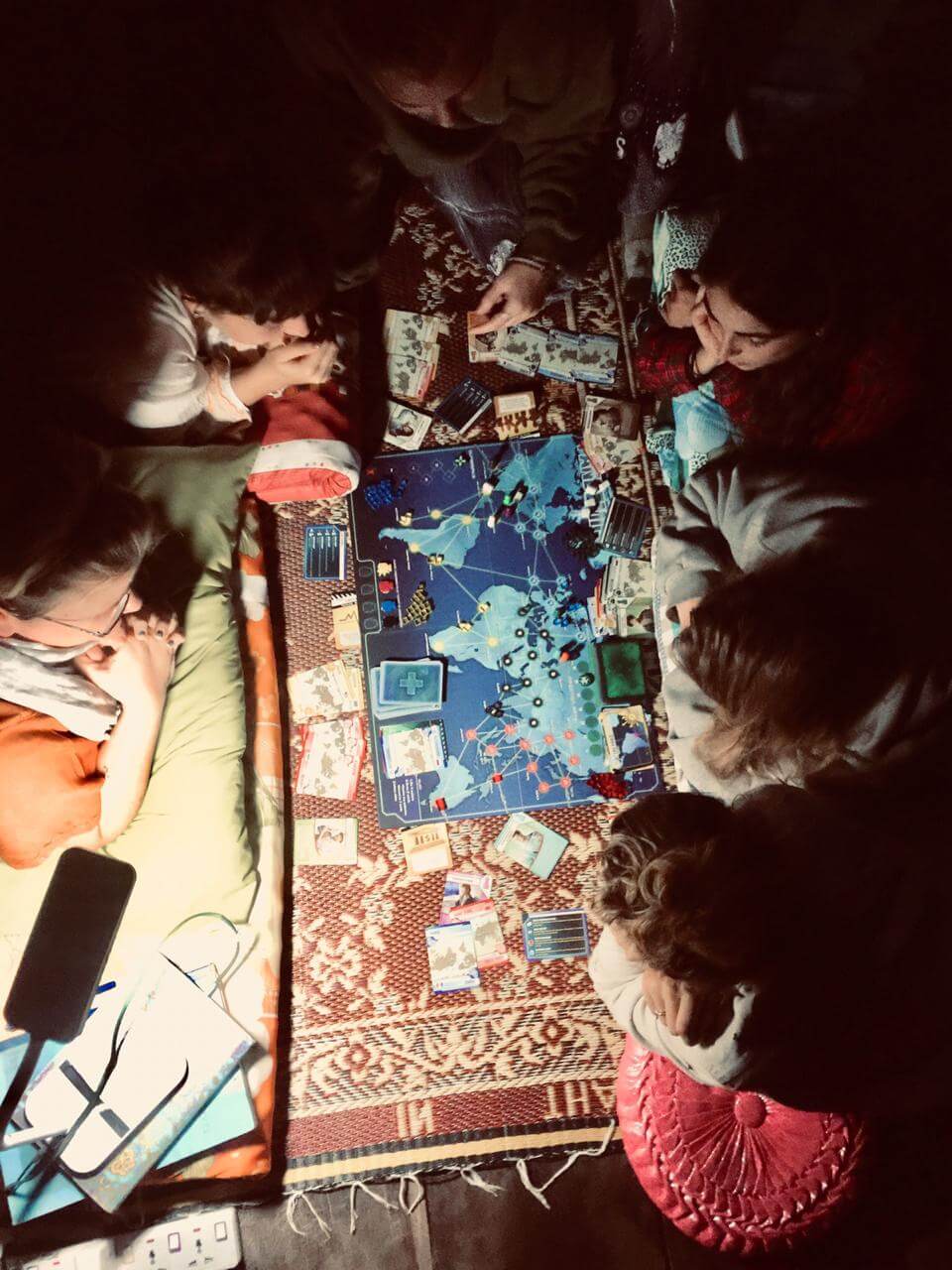 7:45 PM: After a long day of research in the field and when dinner has been eaten and cleaned up, the village becomes quiet. There is no cell phone service, and certainly no WiFi, in the village here. Luckily, the mountain group brought some board games to play in the evening hours. This epic game of Pandemic was the perfect way to end the day!