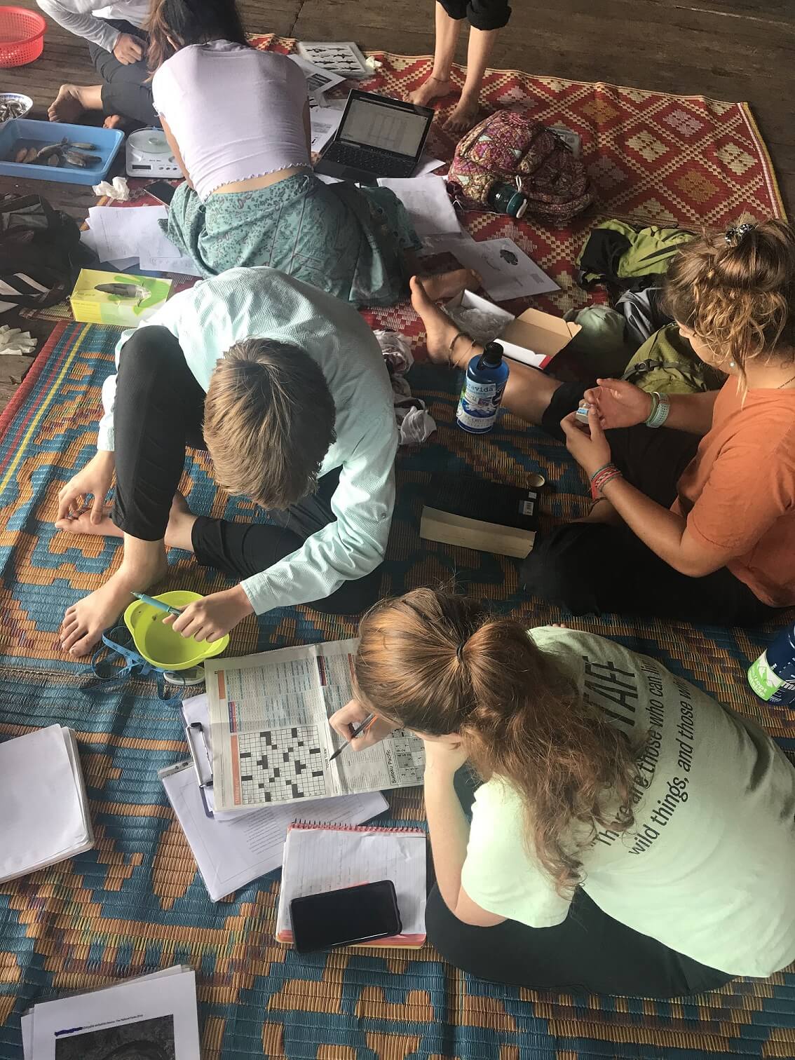 12:00 PM: Over our lunch break at the lake, the students are eager to share what they are finding through their research…and take a quick break to do a crossword puzzle!